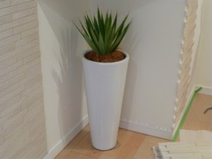 玄関に細長い花器にプミラのグリーン(フェイクグリーン)