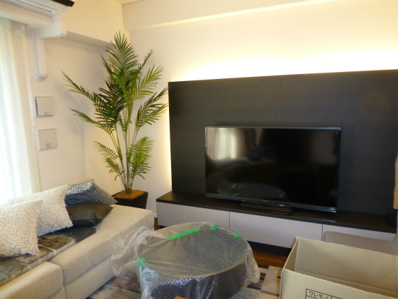 八尾タワーマンションモデルルームに人工樹木(フェイクグリーン)と